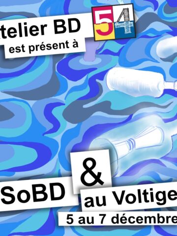L’Atelier BD 54 présente ses travaux également au café LE VOLTIGEUR, à deux pas de SoBD. Vous pourrez admirer quelques réalisations d’artistes de notre collectif.