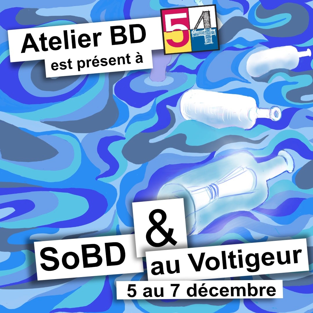 L’Atelier BD 54 présente ses travaux également au café LE VOLTIGEUR, à deux pas de SoBD. Vous pourrez admirer quelques réalisations d’artistes de notre collectif.